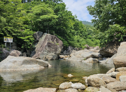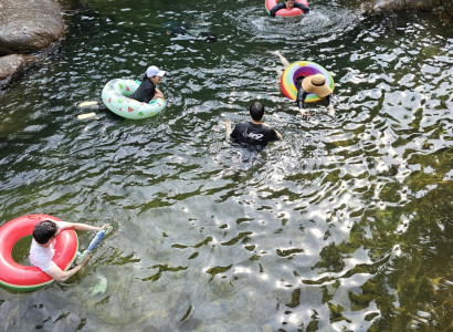 저희 미소펜션은 바로 옆으로 등곡 계곡이 흐르고 있고 높낮이가 다양한 계곡물이 흐르고 있습니다.
